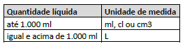(   ) Conteúdo: deve ser informado no rótulo frontal, utilizando a seguinte unidade de medida: