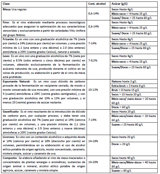 *Importante: la denominación debe describirse exactamente en el orden mencionado en la regla general o de acuerdo con la legislación local – IN DIPOV 01/2019. Ejemplo: Vinho Fino Tinto Seco Malbec. La información de uva es opcional, y se permite mencionar solo una variedad de uva siempre que represente al menos el 75% de las uvas utilizadas en su elaboración, en caso contrario no se permite informar las variedades de uva en la denominación. Existen excepciones a la regla general, por esta razón, validar la descripción final con el importador antes de emitir los documentos originales, evitando problemas en Brasil. Por ejemplo, en el caso de los vinos Moscato / Moscatel Espumante, el contenido de azúcar no puede incluirse en la denominación. A continuación, se muestran más detalles sobre la regla general: